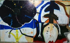 日韓展出品作品:タイトル・チューリップと桜のおしゃべり