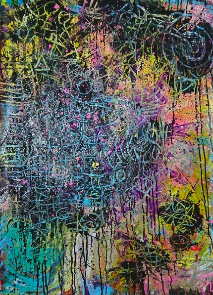 日韓展出品作品:タイトル・チューリップと桜のおしゃべり